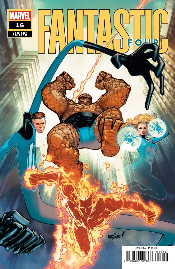 When a teacher shares a list of inventions a scientist from the 1600s hoped future generations would one day make, Valeria and Franklin Richards decide to go for bonus points…by ticking off some of those unfinished items and inventing the impossible. Enlisting the aid of Jo-Venn and N'Kalla Grimm, the four of them engage in a little amateur mad science that quickly spirals out of hand! Do they go to their parents and ask for help? Of course not! A couple of kids can easily fix this, right? According to the couple of kids involved in this series of bad decisions: yes! Absolutely! Nothing will possibly go wrong. Also featured in this issue: several things going wrong! LEGACY #709