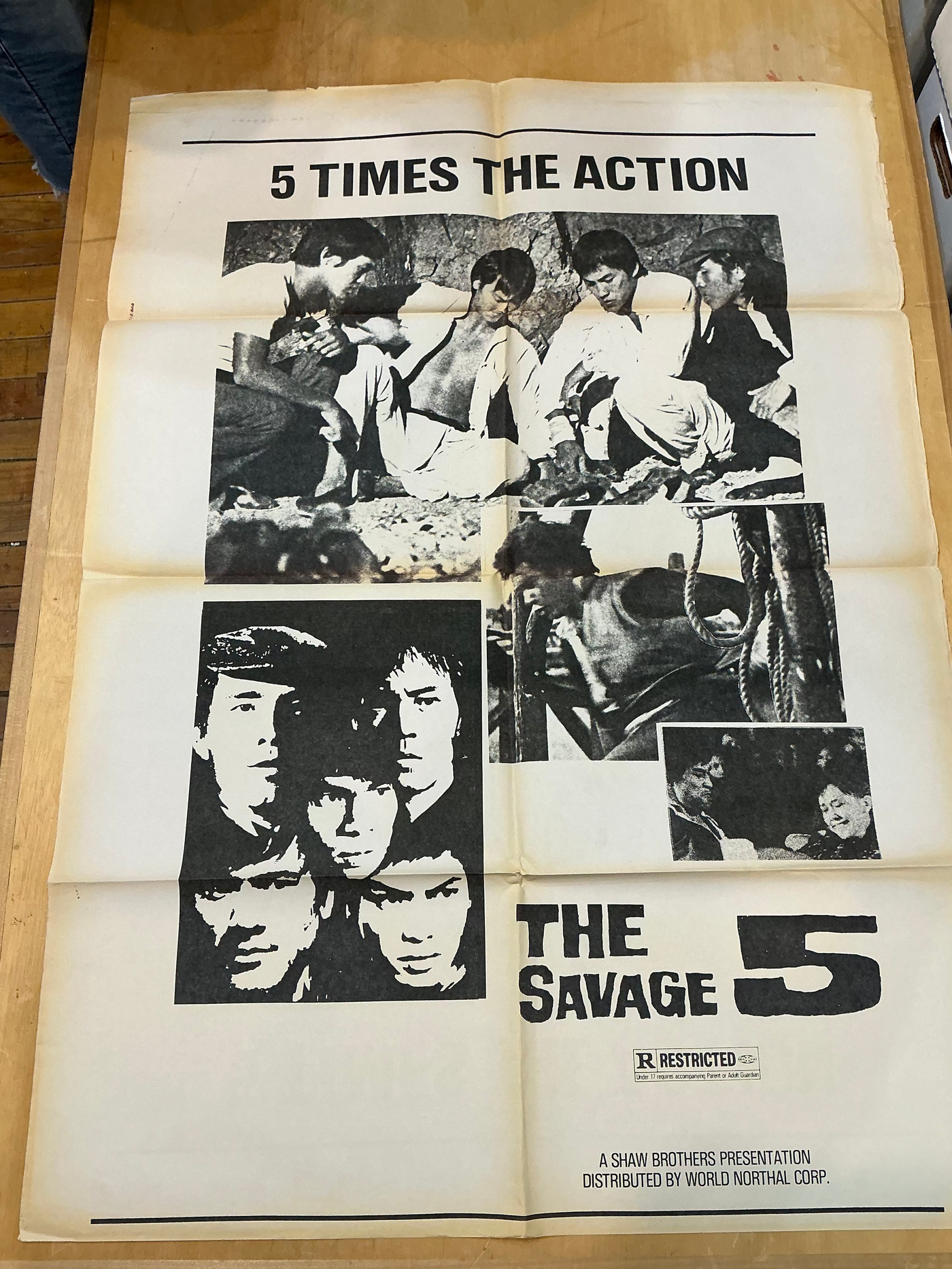 Folded vintage screen printed (?) on low quality paper causing some foxing to the folds.