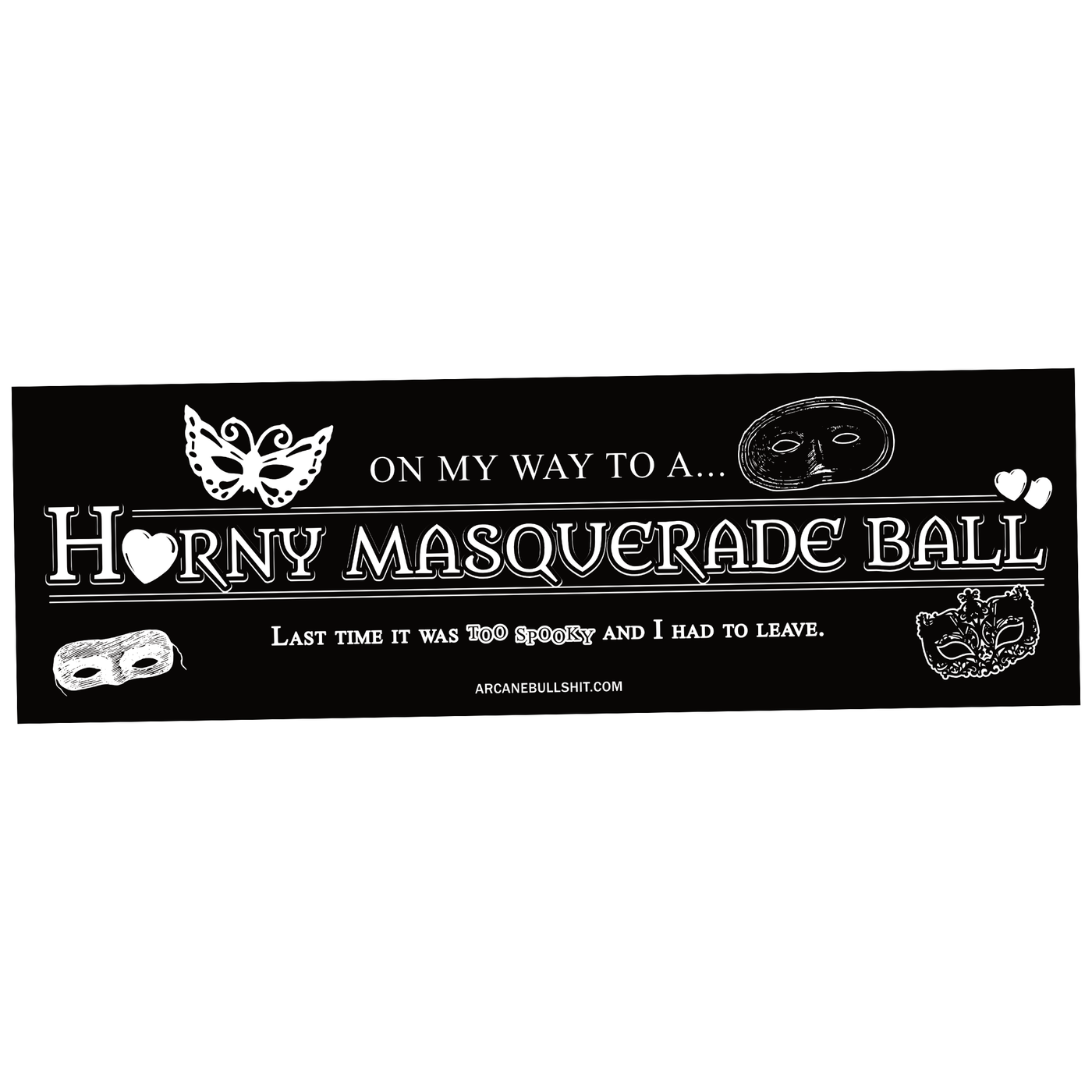 "Horny Masquerade Ball" bumper sticker by Arcane Bullshit