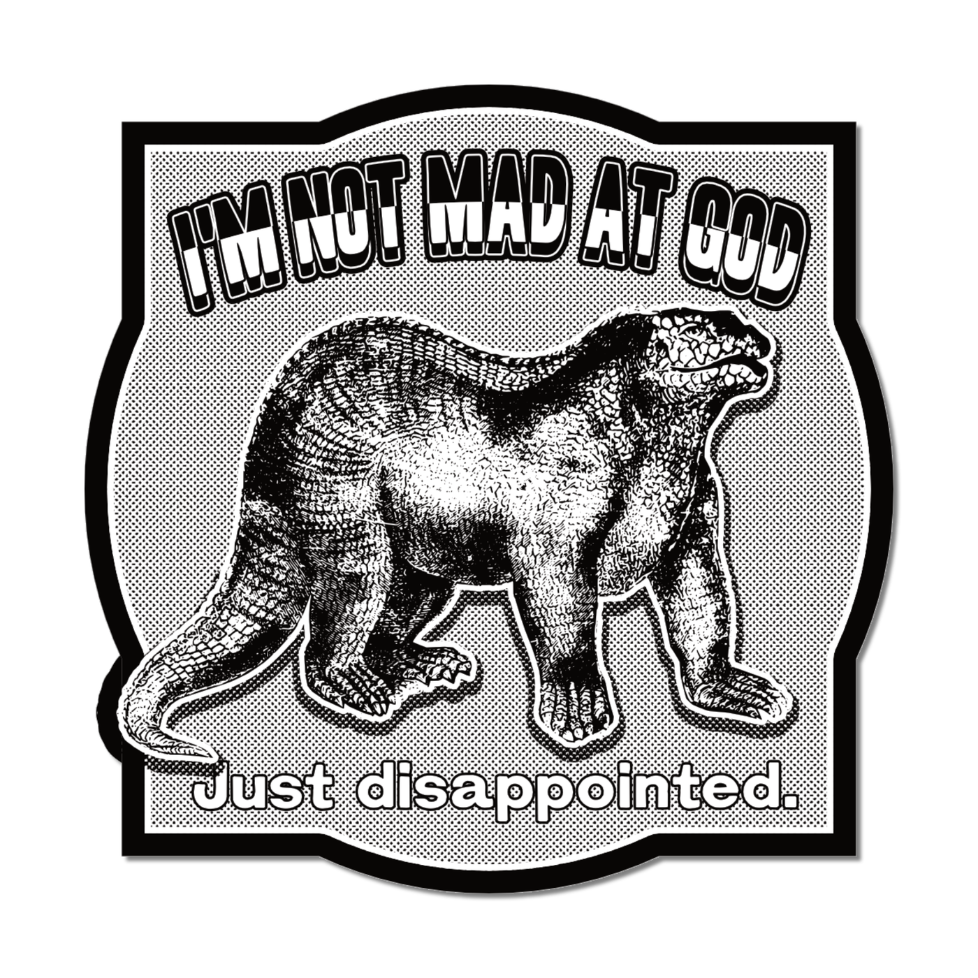 "I'm Not Mad at God" Black and White Sticker by Arcane Bullshit
