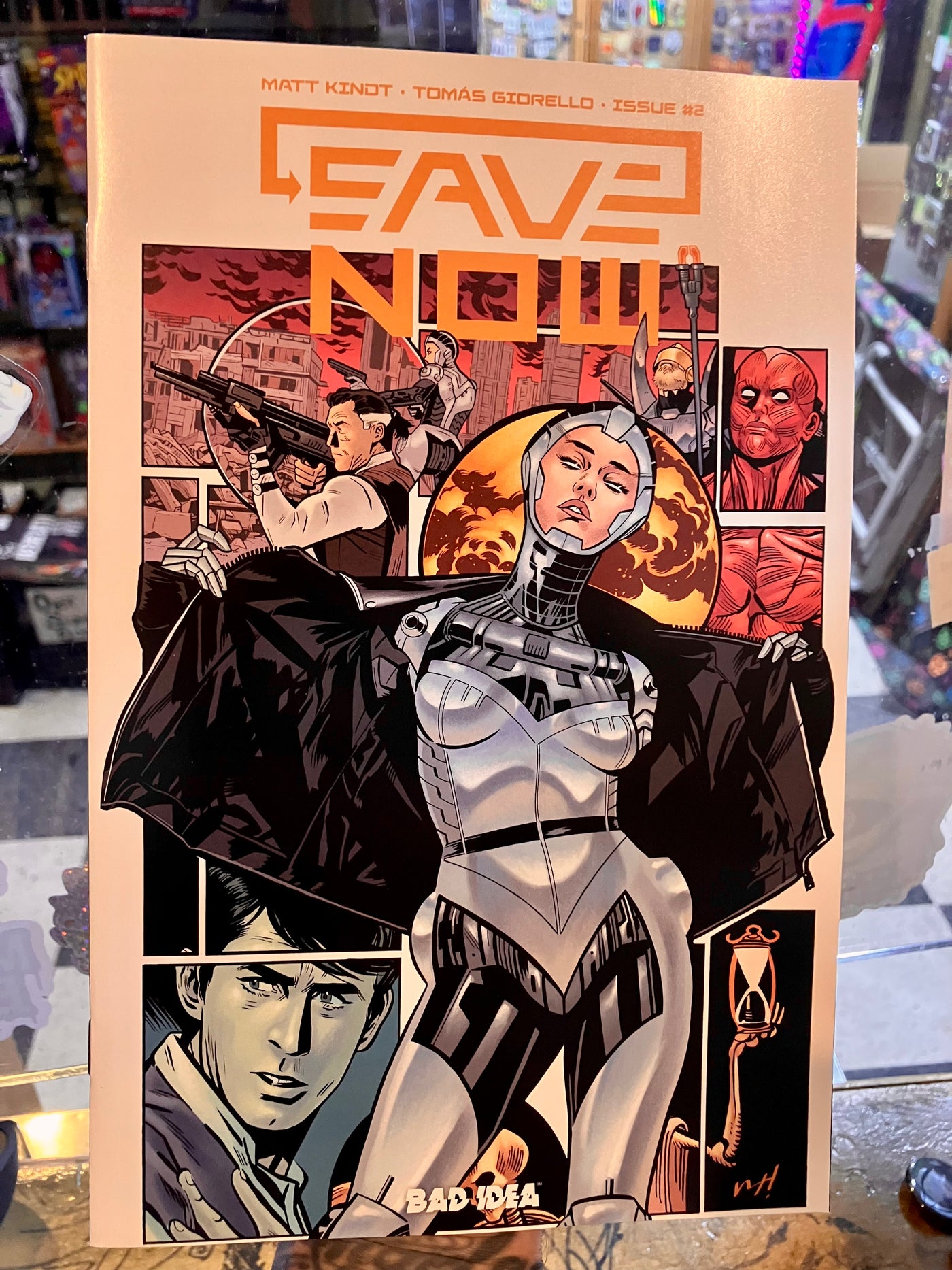 New York Times bestselling writer Matt Kindt (BRZRKR) and visionary artist Tomás Giorello (STAR WARS) tighten the noose in the next action-packed chapter of the heart-wrenching sci-fi event comic of the year. He’s running out of time! After years spent rewinding his life in a desperate bid to stop the impending apocalypse, Saver is grizzled, grey, and through playing hero. No matter how far back he jumps, the future always ends in flames. So he gives up trying, hiding out in the past to relive one perfect year with his wife, over and over again. But when he finds out his wife is pregnant, everything changes. Now anchored in time by the birth of his daughter, Saver can only go back so far without erasing her from existence. With his daughter’s future at stake, Saver launches one final mission: to take out the three people key to triggering the end of the world — an all-powerful witch, a ruthless dictator, and a kid cyber-prodigy. And this time, he has to get it right.