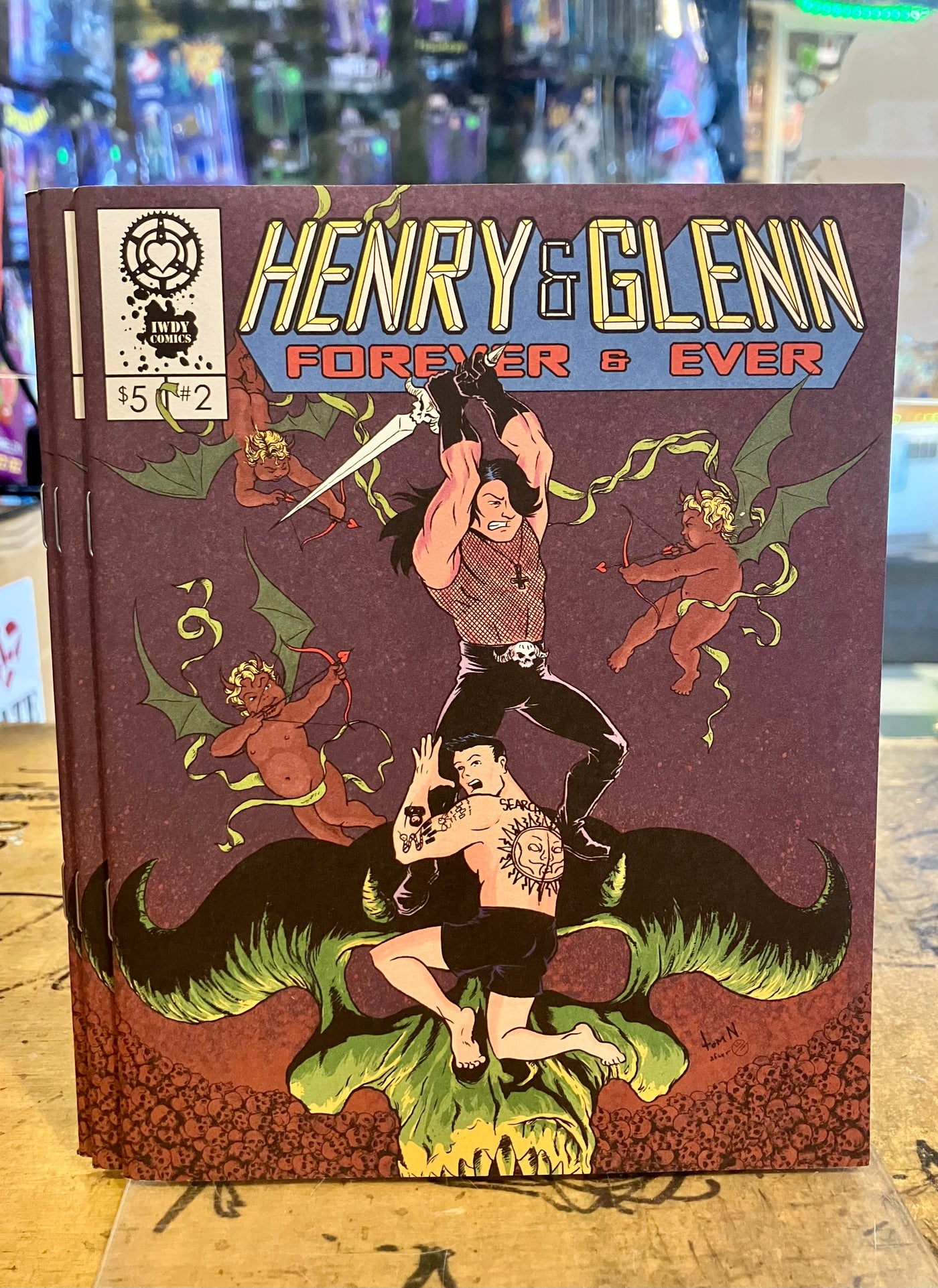 In the latest installment of the greatest love story ever told, Glenn's mother, freshly unearthed from beneath the bricks, moves in with him and Henry. Without giving too much away, Glenn's mommy issues come to the surface as she critiques his art, replaces his wardrobe, scrubs their dungeon, and recalls his childhood. Glenn tries to sell his signature to a UPS driver, takes a punch, and has some daydreaming adventures with a plunger. Henry, "a loud guy with a good work ethic," shows his darker side and indifference to a fan as he drinks black coffee and bonds with Glenn over their distaste for their own bands; two men who suffer best alone together. Additional pin up art by Andy Belanger, Katie Skelly, and Tom Scioli.