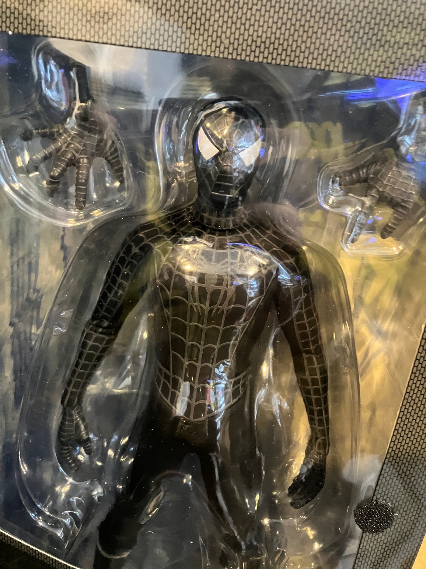 This is a sealed Black Suit Spider-man figure from the Medicom Real Action Heroes line. Sort of a precursor to Hot Toys. Box is in great shape.