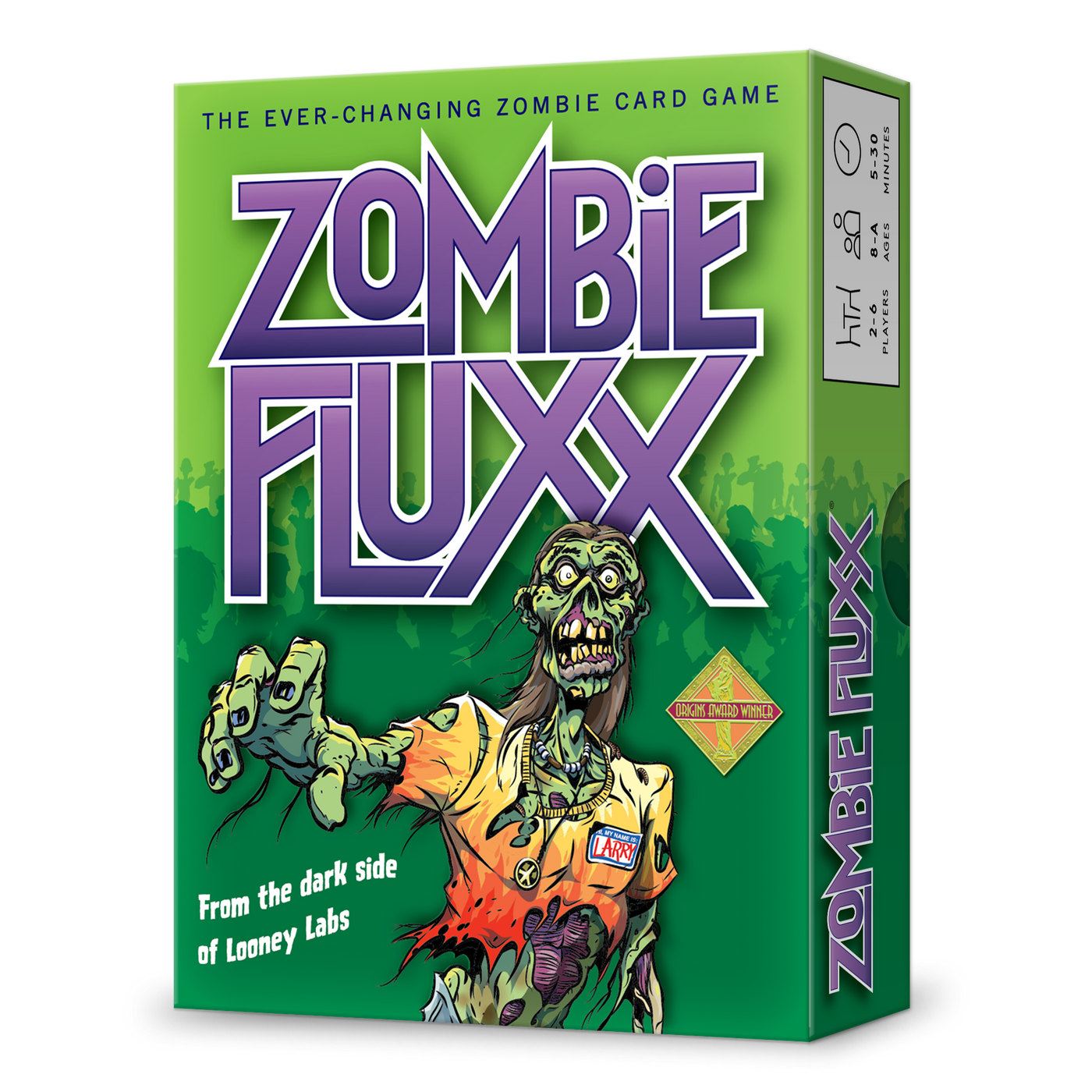 Welcome to the dark side of Fluxx, the card game of ever-changing rules! Zombie Fluxx takes the award-winning card game Fluxx and cranks up the fun with a Zombie uprising. The Zombies arrive in the form of an extra type of card, called a Creeper, which hangs around in front of you, preventing you from winning. The good news is, the Keepers include a Shotgun and a Chainsaw and various other things you can use as weapons against the Zombies. Plus you've got Sandwiches and Coffee and a couple of Friends to help you win. The bad news is, if your Friends become Zombies, you'll have to destroy them!