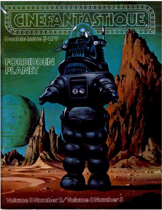 Double Issue: Vol 8, Num 2 AND Vol 8, Num 3. This special double issue includes the following: making Forbidden Planet; a feature on Star Trek: The Motion Picture; Michael Lonsdale on Moonraker; Martin Rosen on Watership Down; a piece on Quatermass; reviews of Attack of the Killer Tomatoes, Invasion of the Body Snatchers, Love at First Bite, and Halloween; and more. Cover painting of Robby the Robot by Vincent DiFate.