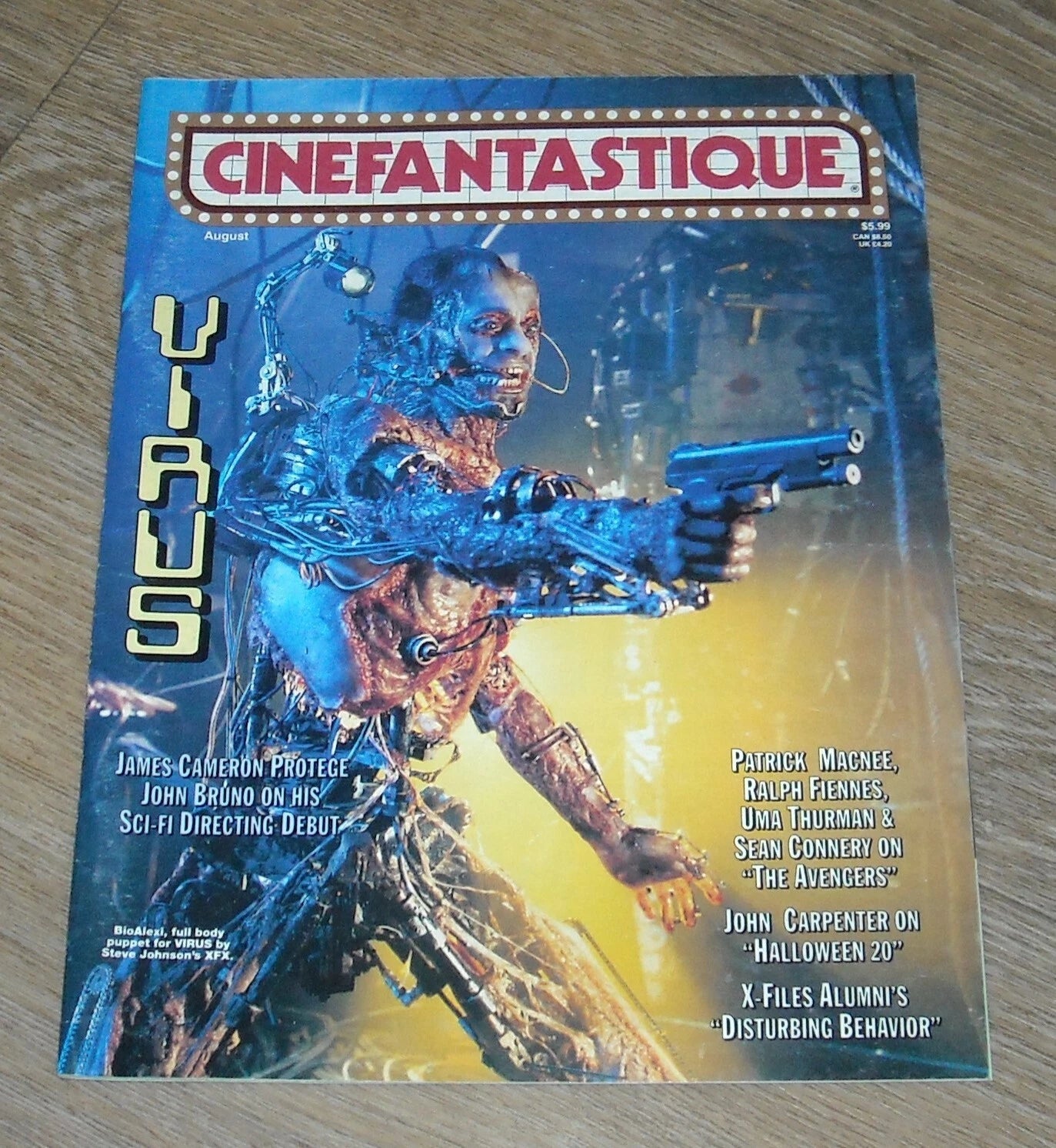 This issue includes the following: John Carpenter on H20; a preview of John Carpenter's Vampires; articles on Disturbing Behavior, Children of the Corn V, and Virus; screenwriter David Goyer on Blade; 14 of Mickey Mouse's best cartoons come out on video; articles on Lucio Fulci's The Beyond; "The Avengers Then and Now"; and more. Virus cover art.