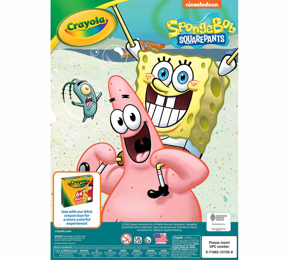 Nickelodeon SpongBob SquarePants 96-Page Coloring Book with 1 sticker sheet. Whoooooooo lives in a pineapple under the sea...SPONGEBOB SQUAREPANTS! Dive into a coloring adventure with your favorite Sponge and some of his best pals from Bikini Bottom. There’s no telling the silly antics he will get up to this time, and fans will delight in coloring scenes with their favorite Nickelodeon character. This SpongeBob SquarePants coloring book includes 96 SpongeBob coloring pages and a sheet of stickers to decorate your artwork! The perfect gift for the SpongeBob enthusiast in your life, this coloring book would pair well will Crayola Crayons or Colored Pencils (each sold separately) or your favorite coloring supplies at home. Ideal for kids, ages 3 & up!
