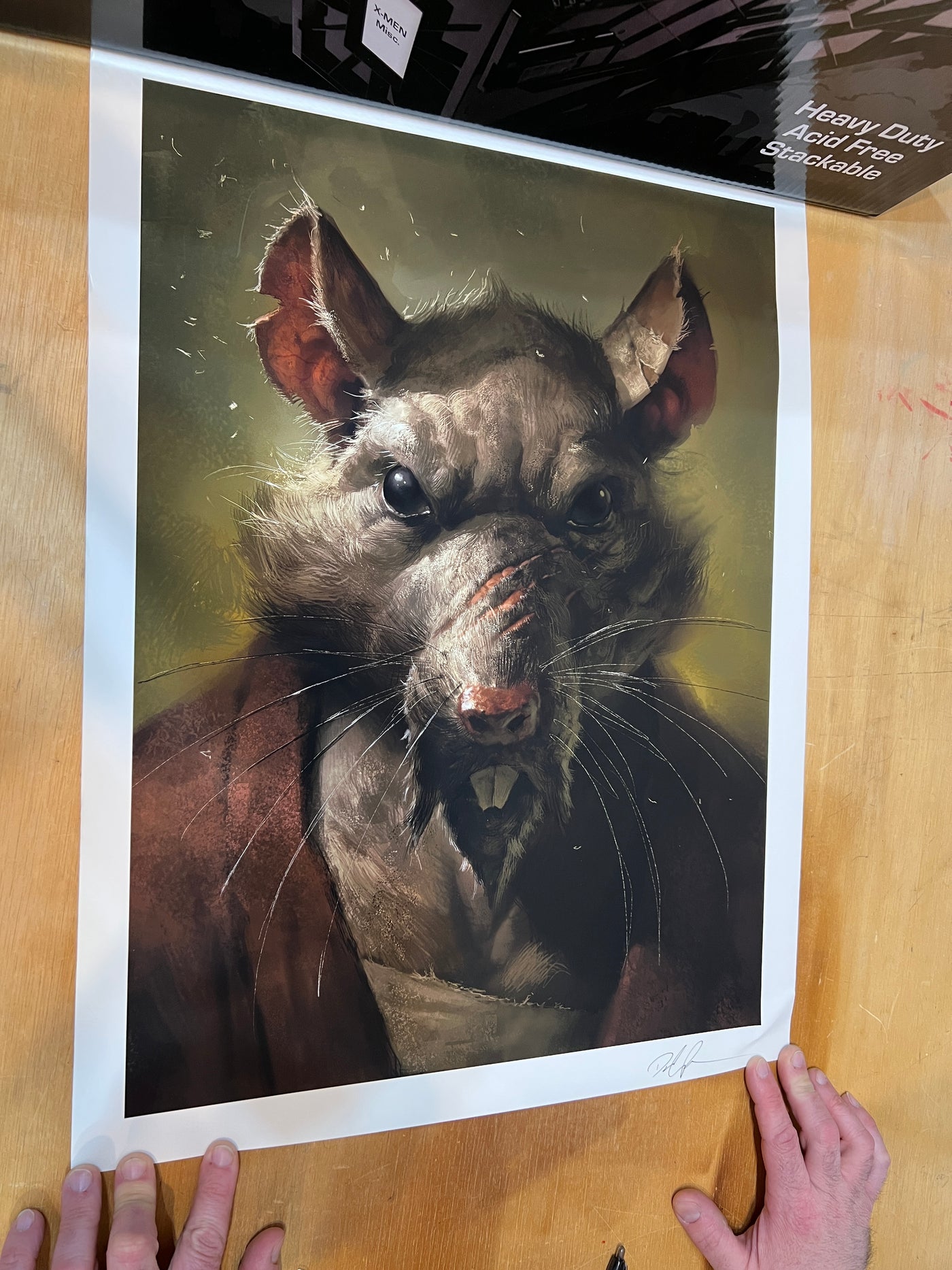 Stored rolled (Roll is pretty set in... Stored since 2011 I think? Mint save a small bump to the corner. Signed, limited to 40 pieces.