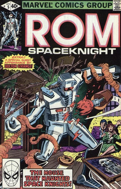 Fearing for the safety of his human friends, Brandy and Steve, Rom retreats from the pursuing Dire Wraiths. Seeking refuge in an abandoned house they soon discover they are not alone. Doctor Strange the Master of the Mystic Arts makes a cameo in the macabre tale "The House that Haunted Spaceknights!"