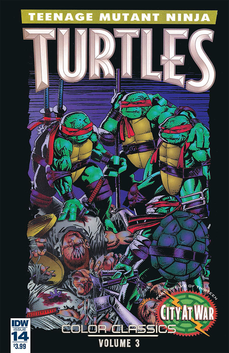 'City at War, Part 12!' The TMNT join Karai in a final battle royale with the renegade Foot Elite soldiers! It's do or die for our heroes! Originally printed as Mirage TMNT #61, Volume 1.