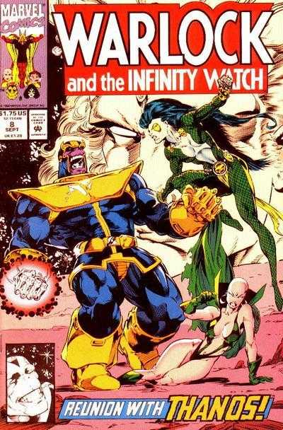 Thanos and the Infinity Watch observe a column of energy. The Titan explains it is a relay junction. Before they can trace the energy source, they must wait for his scanners to recalibrate. Thanos and Warlock briefly share their memories of holding the Infinity Gauntlet.