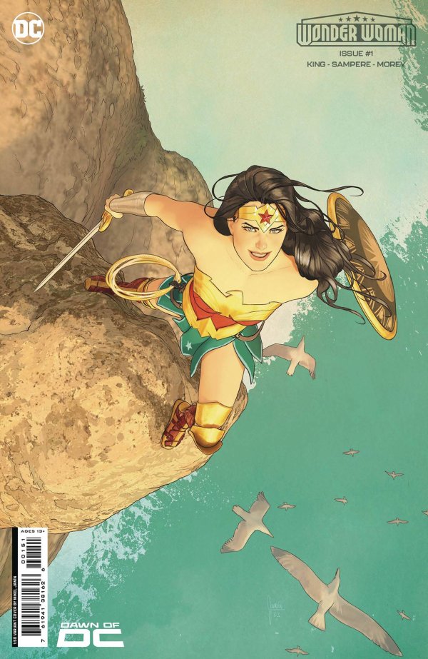 THE AMAZON WARRIOR IS NOW A WANTED OUTLAW! A NEW ERA FOR THE AMAZON WARRIOR BEGINS, FROM THE SUPERSTAR TEAM OF TOM KING AND DANIEL SAMPERE! After a mysterious Amazonian is accused of mass murder, Congress passes the Amazon Safety Act, barring all Amazons from U.S. soil. To carry out their plans, the government starts a task force, the Amazon Extradition Entity (A.X.E.), to remove those who don’t comply, by any means necessary. Now, in her search for the truth behind the killing, Wonder Woman finds herself an outlaw in the world she once swore to protect! Writer Tom King (BATMAN, MISTER MIRACLE, SUPERGIRL: WOMAN OF TOMORROW) and superstar artist in the making Daniel Sampere (DARK CRISIS ON INFINITE EARTHS, ACTION COMICS) join forces for this action-packed relaunch and the beginning of what will undoubtedly become a groundbreaking run on the character. LEGACY #808