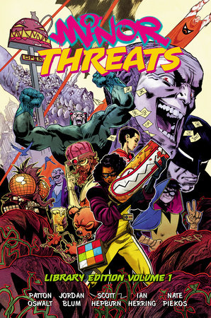 The hit creator-owned comics series from Patton Oswalt and Jordan Blum, showrunners of Marvel’s M.O.D.O.K. on HULU and and superstar artist Scott Hepburn (Tom Morello’s Orchid), comes this graphic crime drama about superheroes and villains and the last gasp of the colorful innocent days of the silver and bronze age before they’re dragged into the grit-soaked modern era. Minor Threats is now optioned for adaptation on Netflix and this debut library edition collects the first two series in a deluxe hardcover format. Minor Threats volumes 1 and 2 witnesses the rise and fall of Twilight City's first costumed criminal queenpin Playtime a.k.a. Frankie Follis. A second-generation supervillain, Frankie is looking for a fresh start and to escape the life of crime that was thrust upon her since childhood. But when The Stickman, Twilight's A-list villain, kills the sidekick to its a-list hero, The Insomniac, all hell breaks loose. No one feels it more than the blue-collar D-list hoods who are being rounded up by the Insomniac's superhero teammates on The Continuum, turning the city into a police state. Frankie decides to seemingly put on the mask one last time, assembling a team of fellow bottomfeeders as they venture out on the most dangerous night of the year to collect the bounty on the Stickman's head and bring him down themselves. After upending the status quo between heroes and villains, Frankie decides to embrace her super criminal past and ascend the ranks as she builds her empire. But heavy is the head that wears the crown as new threats emerge from every corner. Rival villain gangs are instigating a turf war while Frankie's consigliere/lover Scalpel is pressuring her to legitimize her growing business. The Action, a sociopathic group of superhero sidekicks have come to Twilight, looking to uncover secrets that could unravel the very nature of Frankie's power. Can Frankie hold on? Or will the former D-lister turned crime boss lose it all? Find out in the collected first two volumes of the supervillain crime noir saga that launched an entire comic book universe...
