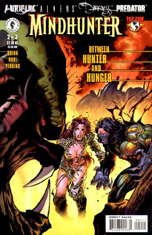 The Darkness and The Witchblade find themselves ripping through the mysterious false reality imposed upon them (Issue #1), they discover that they have been abducted and imprisoned on a huge, living spacecraft high in The Earth's orbit, an ever-changing prison ship controlled by the mind of a madman. Their fellow inmates? Swarms of Aliens, legions of Predators, and acidic fear. It's a grudge match in floating hell!