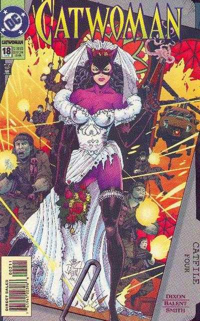 CATFILE PART 4 - HERE COMES THE BRIDE Catwoman violently rejects Prince Willem's marriage proposal, impressed with neither his pompous demeanor nor his rapidly dwindling wealth and status. The Prince remains insistent, however, that Catwoman will be his bride and steal his prized Swan Crown back for him. Faced with a castle full of the Prince's underlings and friends, Catwoman has no choice but to play along. As the ceremony begins, Catwoman dons the dress prepared for her, but wears her costume underneath and attempts to take Prince Willem hostage the first chance she gets. Before her hostage can do anything, however, the castle is stormed by two groups of uninvited guests: the Corsican mob, still furious that the Prince had killed their collectors, and Galiant's agency, which has secured backup from another team. Catwoman uses the distraction to escape, while Galiant's agency easily slaughters the mobsters. However, once Galiant carelessly lets slip that he intends to kill Catwoman, the Prince and his guard gun the federal agents down. A desperate Galiant calls for a gunship to attack the castle, and Catwoman barely escapes by hijacking a car from the prince's friend Dreyfuss and his girlfriend. As Catwoman drives away from the castle, the gunship follows her, but the Prince shoots it down with a Jaeger rifle he had packed for a safari with his future "bride". That bride is now gone, but still alive, and Galiant is now left at the Prince's mercy. Now (temporarily) free of Galiant's agency, Catwoman flees to a Caribbean island for a brief vacation, resolving to take things "one day at a time".