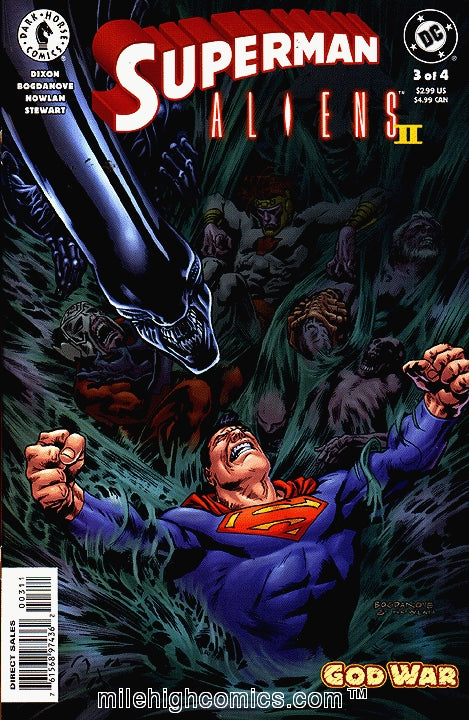 When a ship carrying an Alien brood crashes into Darkseid's domain, he breeds a new horror to unleash upon the homeworld of the New Gods. Superman, visiting super-powered friends on New Genesis, must once again face the threat of the near-unstoppable Aliens when a hideous Parademon army -- impregnated with Aliens -- launches a merciless surprise attack on the otherwise peaceful planet. Dozens of super-beings rally to protect a world now covered with infected Parademons about to burst. Darkseid's horde is bad enough, but how deadly will their Alien spawn be? A surprise ending raises the stakes in this war to a level unforseen by Superman and his mighty allies!