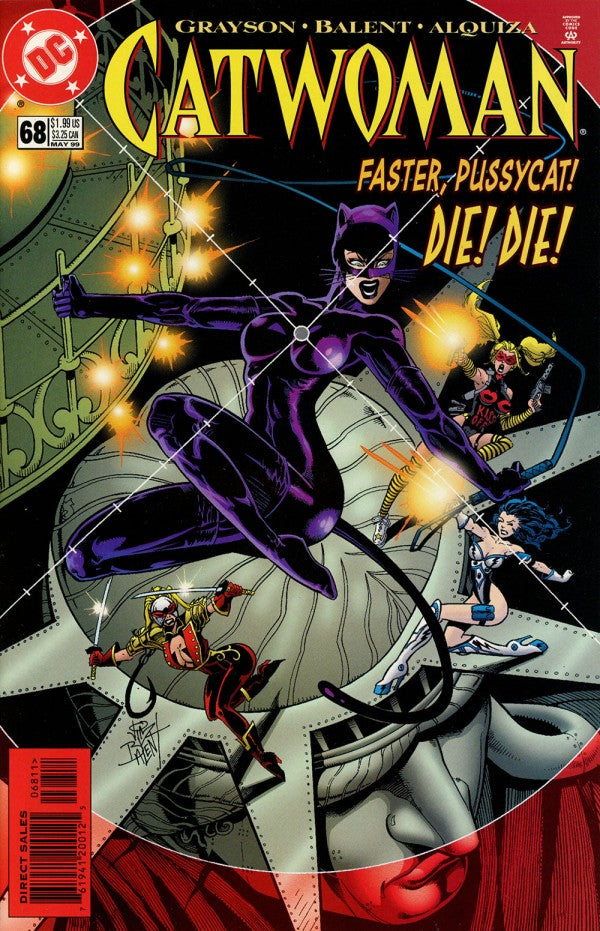 I'LL TAKE MANHATTAN PART 3 - HOT IN THE CITY Selina Kyle attends an event for her mayoral campaign. Two campaign workers, Diane and Murph, gush over her. Diane is particularly impressed with her animal rights platform, and she pours wine for a toast. Selina is about to drink when she sees a sniper, Gunhawk, reflected in the glass, and she pushes Diane to the ground as Gunhawk shoots. Murph is killed. Gunhawk continues firing as Selina crawls across the floor, taking his lighter from Murph's corpse and using it to light the curtains on fire. That sets off the sprinklers, and Selina tells her campaign workers to run while the smoke covers their retreat. Gunhawk reports his failure in to Mr. Sergeyevich. Sergeyevich says they should have hired Deadshot and fires him before hanging up. Sergeyevich asks Nickie Stanci how their attempts to "persuade" Councilman Murty are working, and Stanci says Murty's campaign is going well and he was amendable to working with Sergeyevich once he heard about the bouquet they sent his mother in Central City. Catwoman has a new costume that she debuts to fight Carmen Leno and Bonny Hoffman of Requiem, Inc. Catwoman defeats them. The next day, Selina Kyle is in her office at Randolf Industries when Diane comes to see her. She thinks Selina will cancel her rally at the Statue of Liberty after two assassination attempts in two days, but Selina won't play it that safe. The rally is interrupted by Lady Vic. She tries to kill Selina, but her bodyguards get in the way long enough for Selina to change into her Catwoman costume. Lady Vic is shocked to find Catwoman there, and Catwoman claims she also is trying to kill Selina Kyle for the bounty. The two briefly fight before they fall off, barely hanging onto the Statue of Liberty's face. Catwoman says she has an advantage because she's used to scaling architecture while Lady Vic isn't, and she kicks her in the face, knocking off her mask. Lady Vic is "Diane," a twist Catwoman wasn't expecting. Meanwhile, at the Securities Exchange Commission, Mr. Finnian reports to his boss Maxwell Drucker that "Selina Kyle" doesn't exist. Finnian assures his superior that if Selina Kyle is involved in any kind of wrongdoing, he'll find out and take her down.