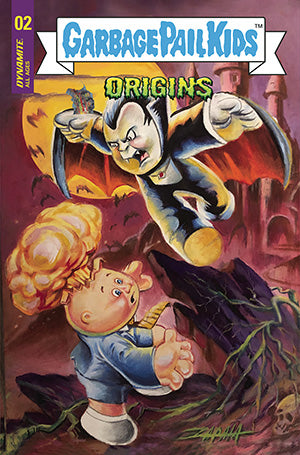 The insane minds of Adam F. Goldberg, Hans Rodionoff, and Jeff Zapata have joined forces to bring you the Garbage Pail Kids as you've never seen them before. Dynamite Entertainment and this incredible trio of creators proudly presents give you...Garbage Pail Kids: Origins!This all-new GPK comic book event is a bad-ass, sprawling, superhero epic; we not only learn how our GPK heroes came to be...but we also reveal to the world that Adam Bomb and his gang of good guys were instrumental in the outcome of World War II and the fate of humanity! In issue #2, it's a battle of brother vs. brother - Garbage Pail Kids style! No worries though, there's only the fate of the world at stake! What could go wrong....?! Only everything!Featuring four incredible covers by Bekki Sharp, Jeff Zapata, Tom Bunk and a classic GPK Trading Card image, presented on cardstock!