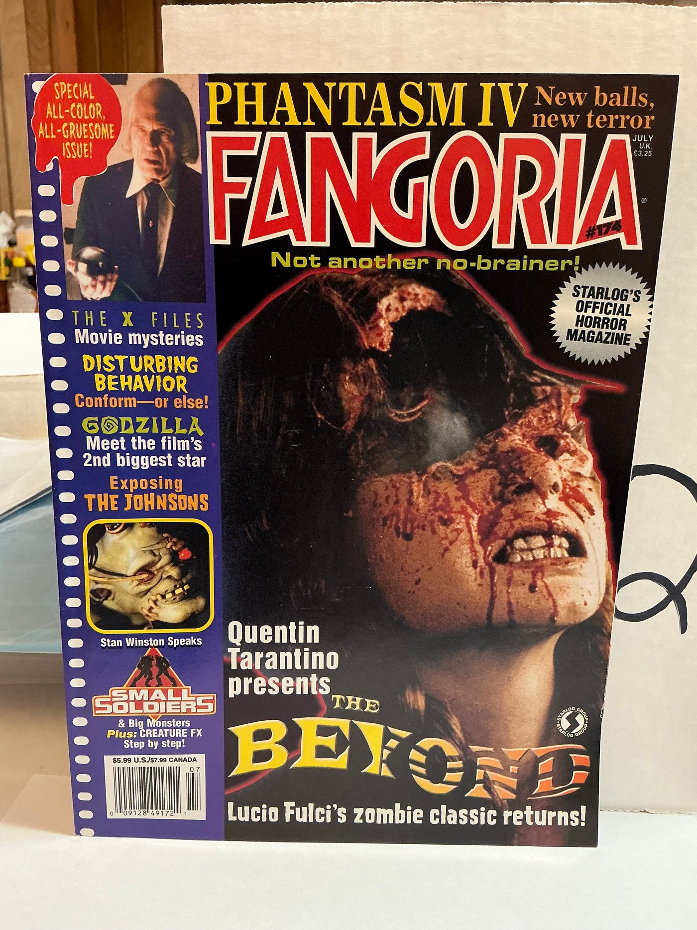 Quentin Tarantino presents The Beyond; Phantasm IV; The X-Files - movie mysteries; Godzilla; exposing The Johnsons; Stan Winston speaks; Small Soldiers.