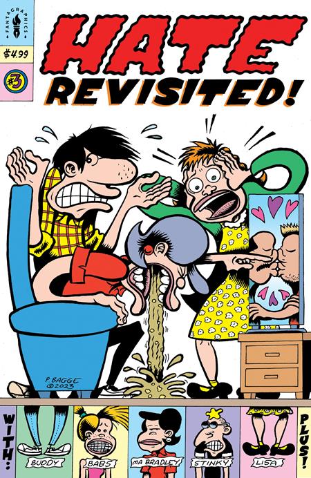 The all suburban-New Jersey issue! Weaving between 1985 and the present day, the third issue of Peter Bagge's triumphant return to Hate spans three generations of the Bradley family and friend circle. Ma "MAGA" Bradley has moved into an assisted living facility, and when Buddy and Lisa pay an obligatory visit, they discover that Stinky's mom lives there as well, forcing Buddy to face his lingering guilt over Stinky's death. Meanwhile, in flashback, teenage Stinky proves every bit as prone to recklessness as he did as an adult. Hate is back and more fiercely funny than ever!