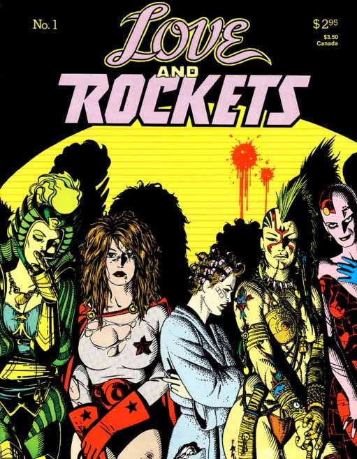 Cover by Jaime Hernandez. Back Cover by Gilbert Hernandez. Stories and Art by Gilbert Hernandez and Jaime Hernandez. The first issue is an expanded version of the 1981 self-published issue. Includes a half-page introduction by Gary Groth. Featuring: Chapters 1-5 of "BEM" by Gilbert Hernandez; Locas tale "Mechan-X" by Jaime Hernandez; "Barrio Huerta (Hoppers 13)" 1-pager by Jaime Hernandez; Locas 1-pager "Penny Century, You're Fired!!" by Jaime Hernandez; Izzy tale "How To Kill a... (By Isabel Ruebens)" by Jaime Hernandez; Bang and Inez tale [Music for Monsters I] by Gilbert Hernandez; "Locas Tambien" by Jaime Hernandez; and a brief La Chota tale by Jaime Hernandez. 68 pages, B&W. Mature Readers.