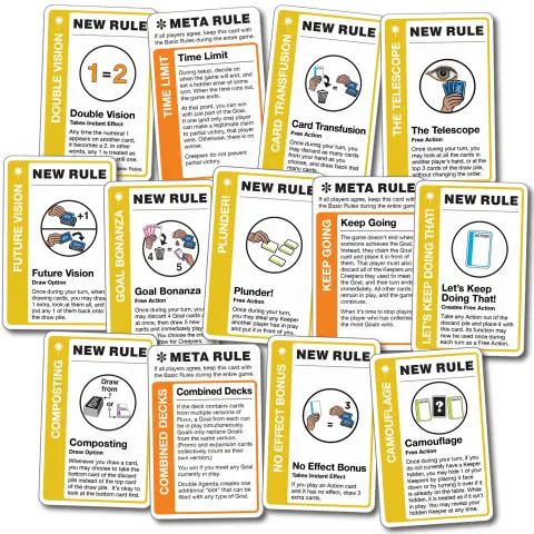You can add these extra RULE cards to any FLUXX deck to spice up the fun! Includes 10 fun, lesser-seen New Rules, Plus 3 Meta Rule cards. Wrapped in a small foil pack, this "MORE RULES" expansion pack is not a stand alone game and is intended to be combined with any FLUXX game to add some lively fun. Players: 2-6 players | Ages: 8+