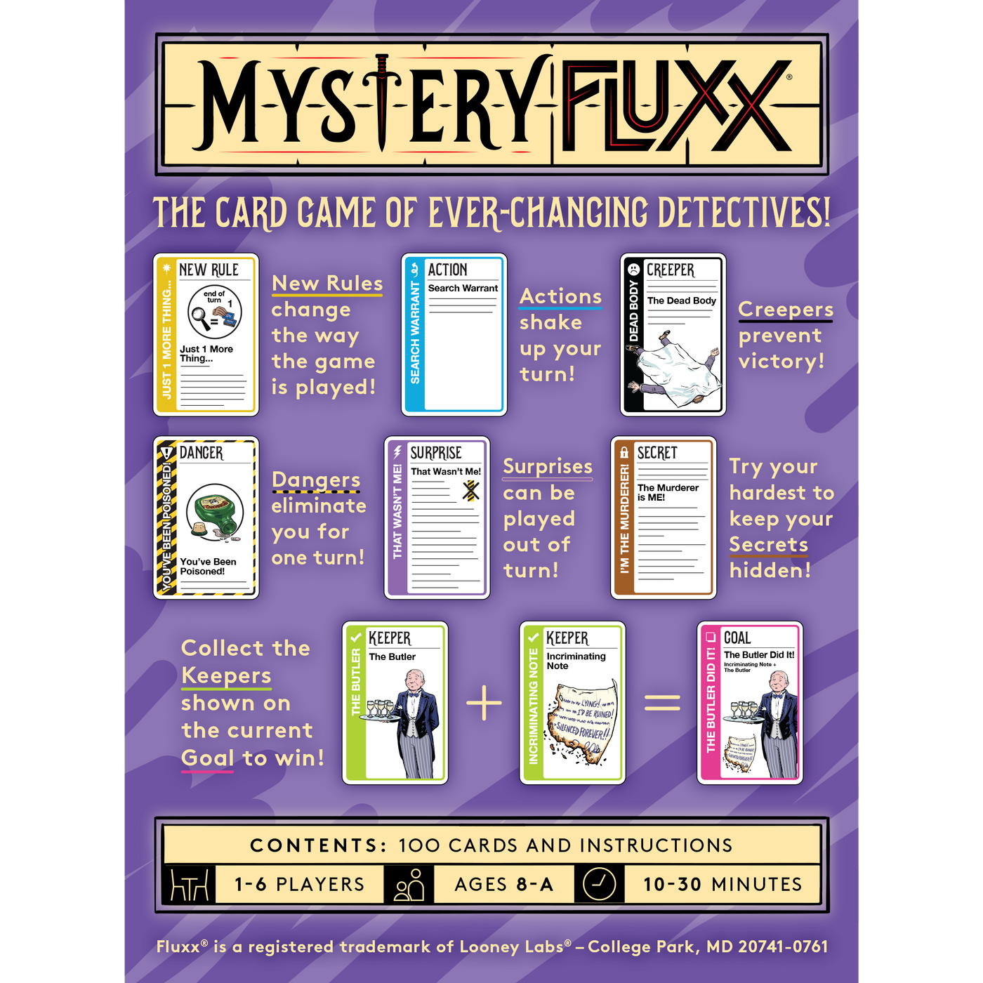 looneylabs.com/MAPP - Minimum Advertised Price: $19.95 The Card Game of Ever-Changing Detectives! It’s a mash-up of all your favorite detective stories! This time, the Keepers include clues to the murder, scenes of the crime, weapons, suspects, and a host of classic detectives. Danger cards can cause players to be eliminated (but don’t worry, you can quickly jump back in) and this version introduces another type of card: the Secret! It’s non-transferable and if you’re forced to play or reveal it, bad stuff happens. The game is afoot! Players: 1-6 | Ages: 8+ Comes with a free colorful display when you buy 6 copies!