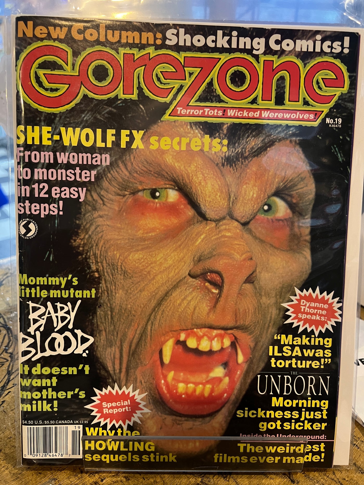 Butcher in Blue - Maniac Cop 2...horror's Lethal Weapon; Pit & the Pendulum's new torturer; Lunatics - twisted love from Evil Dead gang; Fanzines - journalism with guts; With My Eyes Peeled - Steve Bissette's new column; Keeper of the Grim Reaper - Italy's grossest director; step-by-step makeup FX - Dead Space...creating alien horrors; four giant bloody posters.