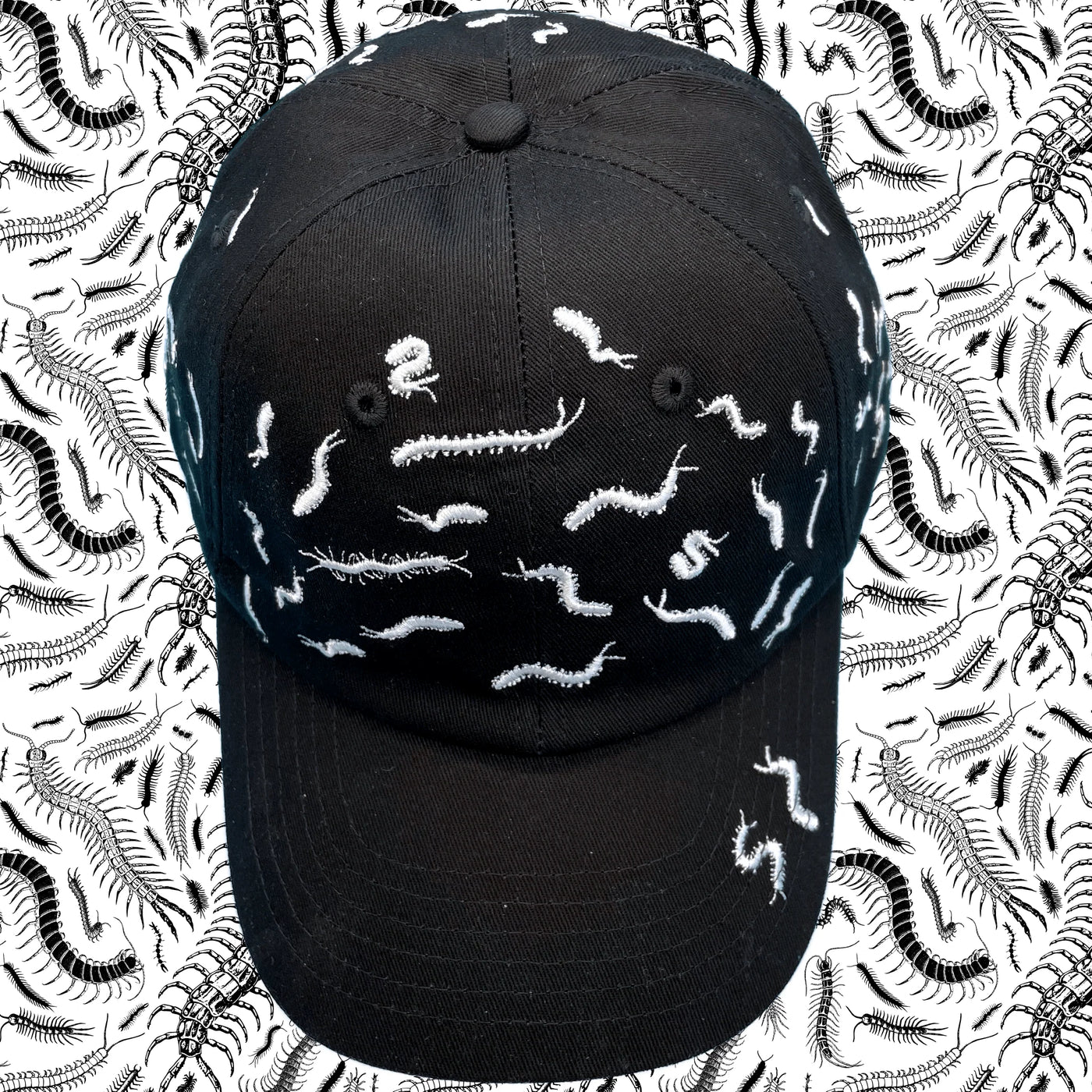 They said it could never be done. No one would ever put 67 centipedes on a piece of headwear. Well, the theoretical Centipede barrier has been broken. You can now achieve perfect cranial centipede saturation, with this fabulous hat!