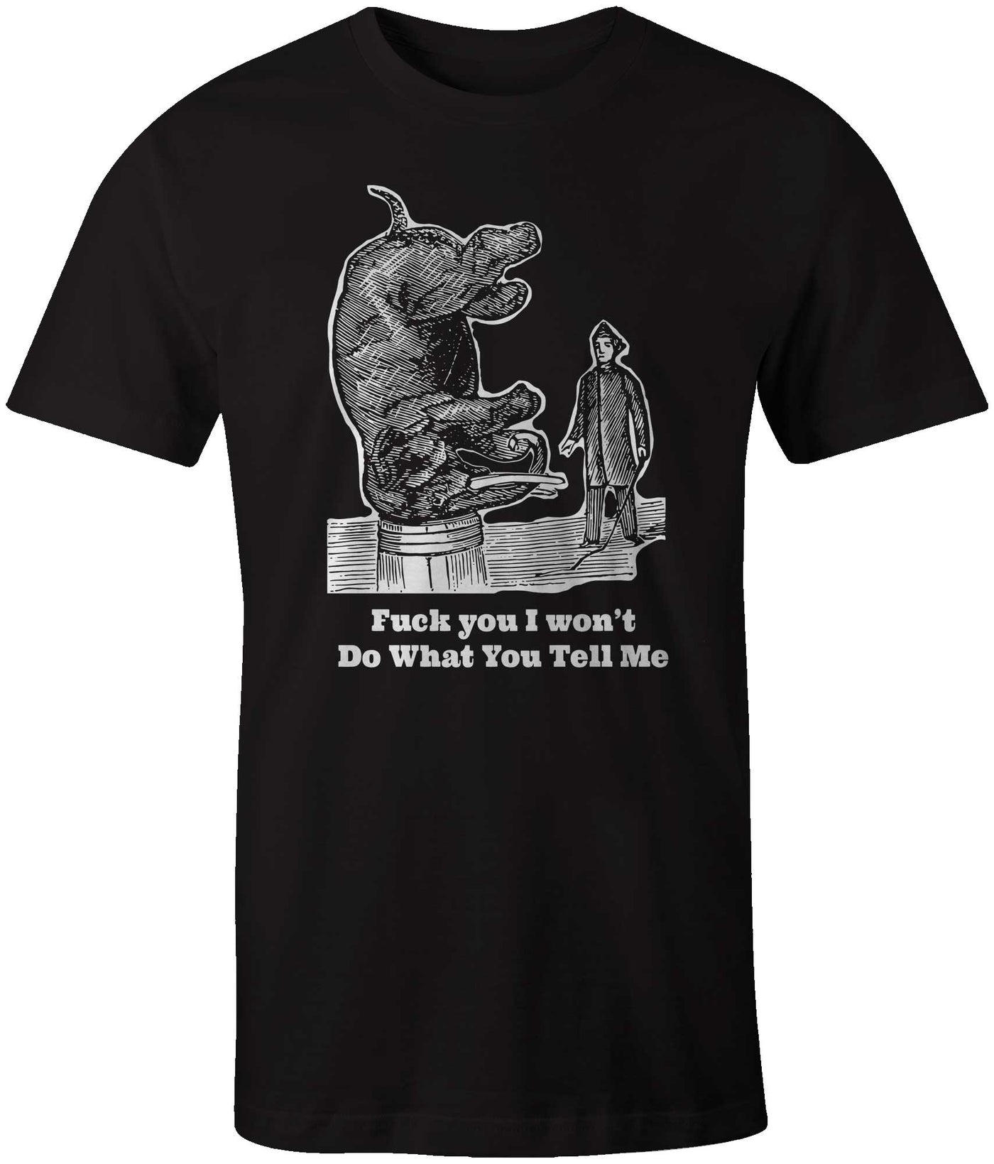 T-Shirt: I Won't Do What You Tell Me (Upside Down Elephant)