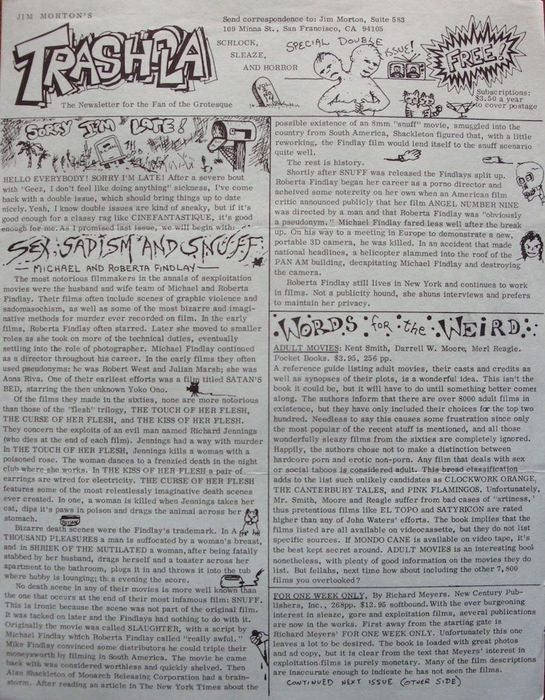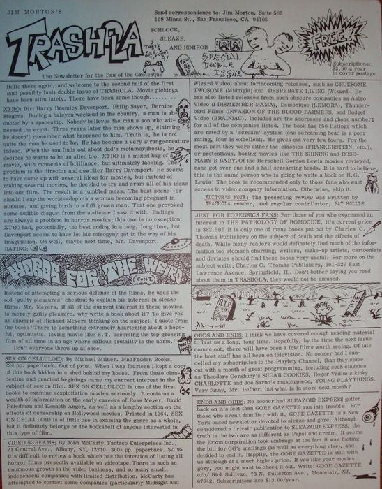 Trashola Vol. 2 #14 & #15 Double Issue (1981 Horror Fanzine) Jim Morton's