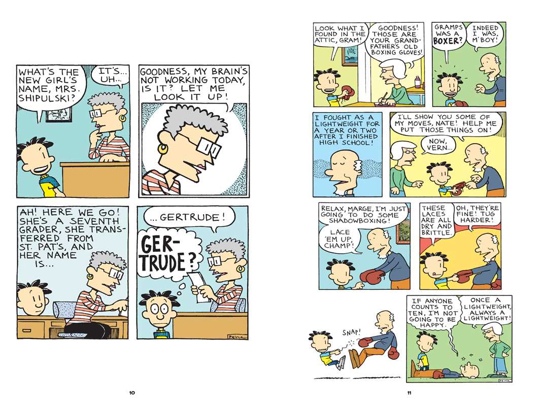 [AMP] Bestselling author Lincoln Peirce takes readers on a hilarious, romantic, rock-and-roll adventure in this installment of the bestselling series! Nate Wright is born to be wild! And when Enslave the Mollusk is invited to play at the P.S. 38 annual open house, he and his bandmates are on the stairway to heaven. While the kids rock, the school year rolls on. Mrs. Godfrey is back in black, Gina thinks she’s hot stuff, and Coach John is dazed and confused. The good news: Nate’s finally reunited with Trudy, his summer crush. But when he finds out she’s a—gulp—seventh grader, will Nate lose that lovin’ feeling? Middle school is a long, strange trip, and this collection of riotous Big Nate comics just might BLOW THE ROOF OFF!