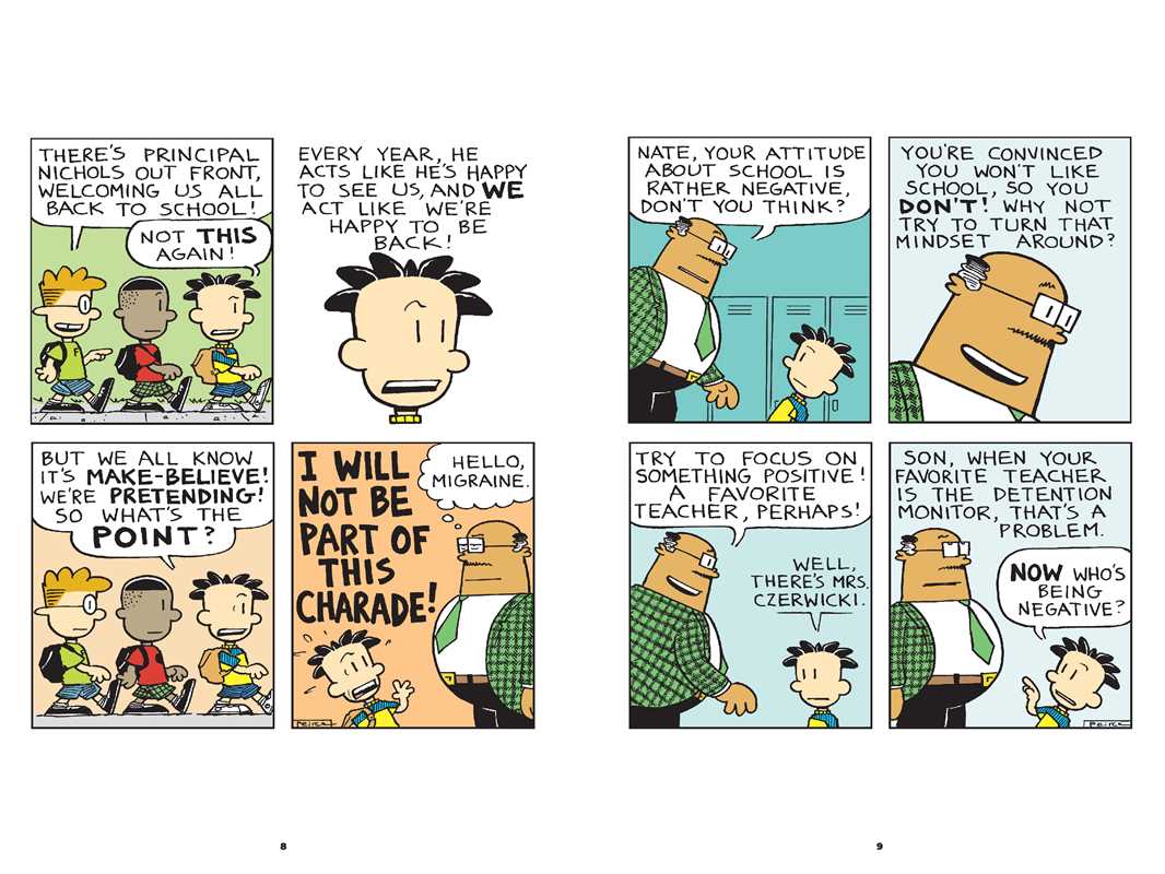 [AMP] Big Nate delights middle grade readers with stories of mischief and misadventure in these full-color comics featuring sixth grader Nate Wright and friends at P.S. 38. Middle school can be a hot mess—especially for sixth-grader Nate Wright. Whether he's bluffing his way through an oral report about...umm...some random war, peer-reviewing a classmate's story about cats, or writing a book report on a literary gem called The Cheerleader Chronicles, Nate's usually up to his eyeballs in stress. But our hero always finds ways to cope. Like bringing Spitsy to school as an emotional support dog. Or creating a graphic novel to (sort of) complete his math homework. Nate even authors a no-nonsense advice column with a title that says it all: Ask The Genius. So take a tip from P.S. 38's resident renaissance man: When problems start piling up, do what Nate does: REMAIN CALM!