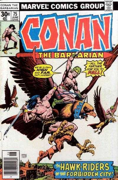 Conan and Belit are fleeing a rioting city, but have they bitten off more than they can chew when they find themselves up against blood-thirsty men riding giant hawks?Note: This issue contains the Hostess Superhero Ad, Captain America and the Sore Sir's Apprentices.