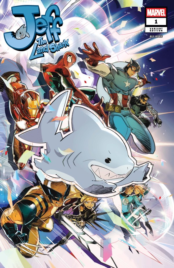 FRIENDS AND RIVALS! Hot off his star-making appearance in Marvel Rivals, everyone's favorite walking fish-boy has bitten off his first starring miniseries! Join Jeff as he teams up with many of the friends he's made over the years and outsmarts more than a few rivals along the way... and this time, he's got some all-new abilities on his side! Join Jeff co-creator Kelly Thompson and artist Tokitokoro as they sharpen the teeth of the undeniable star of the entire Marvel Universe — love him or hate him, you know you want to see MORE JEFF!