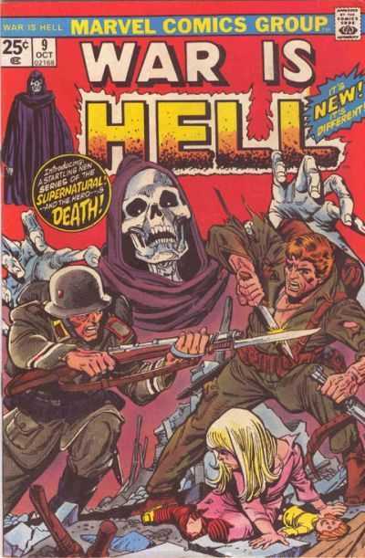 Last 20-cent issue. Cover art by Dick Ayers. "To Die At Dawn," art by Jay Scott Pike; Allied forces hatch a plan to break captured British and American airmen out of a POW camp. "Court Martial," art by Werner Roth; Private Munson is accused of cowardice and sent to the rear for court-martial but finds his place helping the wounded. "The Last Battle!", art by Joe Orlando; Two infantrymen witness the Charge of the Light Brigade. "Trip Flare!", script by Paul Newman, art by Ed Robbins; BAR rifleman Private Falk volunteers to plant trip flares and grenades around his company's position, but before he can return to their lines he runs into enemy troops and has to set off his flares and grenades to help kill them; Falk returns to his side's lines, but his superior suggests he go back out and plant new flares and grenades. FOOM ad. Spider-Man Medallion Coin ad.