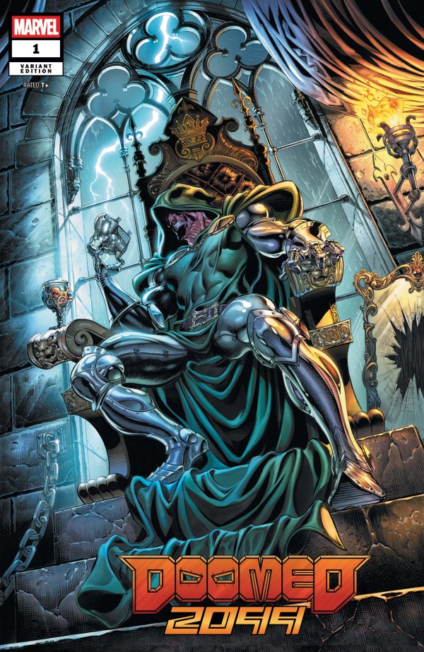 The Future is Doomed! The world is Doom's... but does that include the world that is yet to be? A coalition from the future — including OLD MAN LOGAN, RACHEL SUMMERS PHOENIX, BISHOP, COSMIC GHOST RIDER, THE MAESTRO and DEATHLOK say otherwise. But will the arrival of Doom 2099 change the odds for the new Sorcerer Supreme? Is he there to back his past self... or destroy him forever?