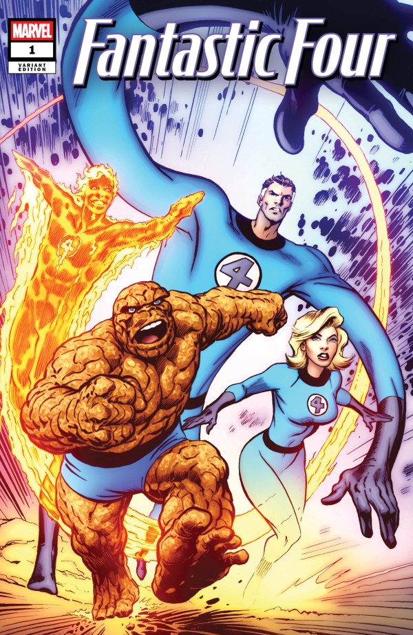 The Fantastic Four return with a new issue #1, kicking off a whole new volume of their adventures through time, space, science, and the human condition! When the Fantastic Four take on Doom, things go well until they suddenly go catastrophically wrong — and they're sent to four different eras in Earth's history! Alone and isolated in wildly different time periods, Reed, Johnny, Ben, and Sue all have to fight to survive. Their only hope is to reach the Forever Stone: a mass of dense granite that happens to be one of the longest-lasting rocks on the planet, which — through a combination of obscurity and raw geological luck — has stayed both intact and accessible for most of Earth's history! Also featured in this extra-big, extra-special issue: Ben Grimm fights a dinosaur! No other comic DARES to feature the Thing battling several Mapusauruses, but that's just where WE get started! And it's all brought to life by the incredible new series artist Humberto Ramos! LEGACY #727