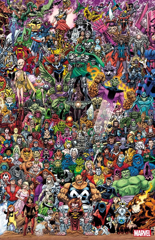 COLOSSAL ISSUE #700! FANTASTIC FOUR #7 is also FANTASTIC FOUR #700, which means we’re ABSOLUTELY going huge. It’s an over-sized spectacular as the Fantastic Four reach their new home—not knowing that a mysterious threat has made it there first! As their knowledge of LANGUAGE ITSELF begins to melt from their minds, the Four are in disarray as their existence hangs in the balance…and the greatest villain of all time finally seals their DOOM.