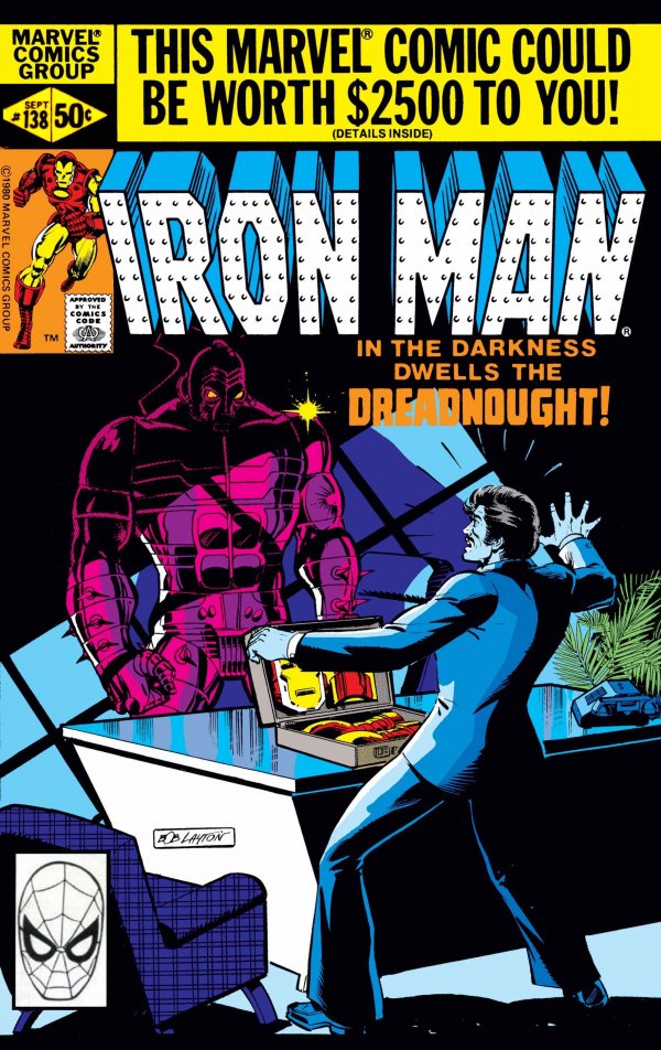 "Facades and Ruses" In the darkness dwells...the Dreadnought! Characters: Iron Man; Bethany Cabe; Jim Rhodes; Madame Masque (Villain); Spymaster (Villain); Dreadnought (Villain). Written by David Michelinie (plot, script) and Bob Layton (plot), with art by Bob Layton and Tom Palmer.