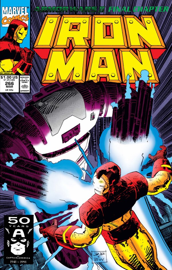 At last the Invincible Iron man comes face-to-face with his tormentor of the past several weeks! Why does Kearson DeWitt hate Tony Stark so much? The answer will have to wait as DeWitt possesses his own powerful suit of armor! And in no time at all DeWitt and Shell-Head are trading haymakers over the skies of Los Angeles! But the golden avenger is still weak! And victory looks very much in doubt! Until an old friend arrives in the nick of time to end the second armor wars! Cameo appearances by Jim Rhodes and the Mandarin.
