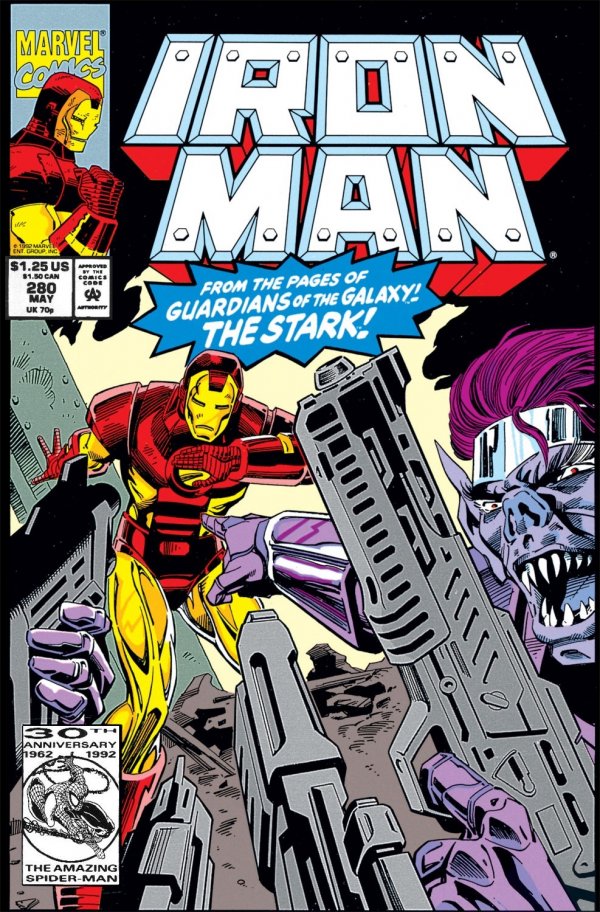 Some weird dude with a dumb face tries to shoot Iron Man. Where did he get Luke Cage's tiara?