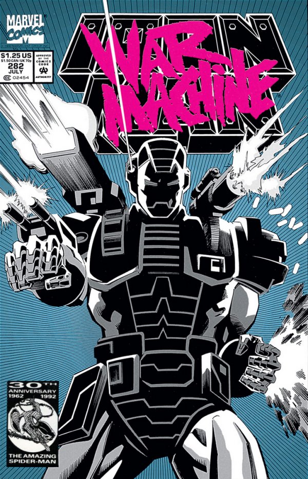 This is it! The debut of the War Machine armor! And Iron Man's going to need all the firepower at his disposal to stop the armor-piercing weapons of the Masters of Silence, who are determined to make Stark pay! And behind it all? The devious Justin Hammer!