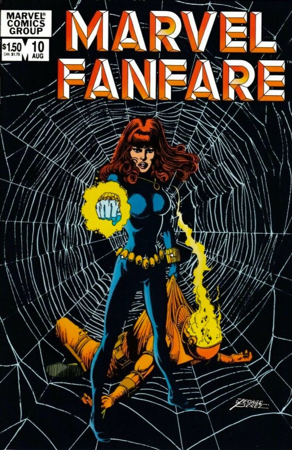 "Widow" Part 1 of 4. Guest-starring the Black Widow. Script by Ralph Macchio. Pencils (and co-plotting) by George Perez. Inks by Brett Breeding. Chapter 2 pencils by Bob Layton and Luke McDonnell. Cover by George Perez. SHIELD has a new assignment for Natasha Romanoff! And this one will take her back inside the Soviet Union! But before telling the widow about her next mission, Nick Fury details to Sam Sawyer the long history and origin of the Black Widow! Flashback cameos by the Red Guardian, Hawkeye, Iron Man, Captain America, Quicksilver, Scarlet Witch, Goliath (aka Hank Pym), Daredevil, Spider-Man, Hercules, and Ivan Petrovich. Second story: "How Fear Came" Script by Mary Jo Duffy. Pencils by Gil Kane. Inks by P. Craig Russell. The adaptation of Rudyard Kipling's "The Jungle Book" continues. Special feature: This issue includes a portfolio of Brent Anderson's artwork. Five full-page illustrations/pin-ups of the Thing, Captain America, Wolverine, Shang-Chi, and Moon Knight. (Notes: The back cover features a scene from the Jungle Book adaption with art by P. Craig Russell. Printed on glossy paper. The four-part Black Widow story was reprinted in the one-shot Black Widow Web of Intrigue (1999).) 32 pages. Cover price $1.50.