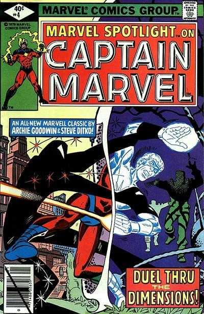 Marvel Spotlight on Captain Marvel - "Shadow Doom!" Written by Marv Wolfman and Archie Goodwin. Art and cover by Steve Ditko. It's a duel through the dimensions, as Captain Marvel fights for his life in the spaces between time and space!