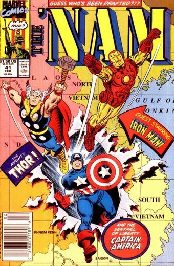 Ice's disgust over what's happening in Vietnam sets the stage for one of the most unusual, poignant 'NAM tales yet! In a war filled with so many villains, Ice needs not just a hero— he needs a super hero, and lots of 'em! So enter Iron Man, Thor, and Captain America!