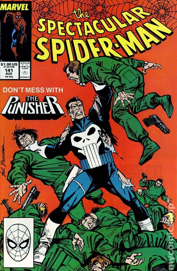 THE TOMBSTONE TESTAMENT With a recorded confession from Joe Robertson regarding a murder committed decades ago by the mobster named Tombstone, Spider-Man finds himself working with the Punisher. Following the Punisher's van to the West Side Marina, the wall-crawler is brought to the yacht that the Punisher has been using as a mobile base of operations. Spider-Man isn't sure he can trust the Punisher after the vigilante pulled a gun on him when they first met on Liberty Island. There, the Punisher explains that he has been tracking Tombstone across the country. After learning that the mobster had recently arrived in New York City, and the Punisher is making it his business to find out why. He wants access to the recorded confession from Joe Robertson as he believes that it holds the answers he needs. Knowing that the recording is in the possession of Peter Parker, the Punisher tells Spider-Man that he will get it even if Parker and the wall-crawler opposing him. At that moment, outside, Tombstone and some of his men have tracked down the Punisher to the marina. Confirming the Punisher's hideout, Tombstone tells his minions to wait until dawn and attack him but to let the Persuader do what needs to be done. Inside the Punisher's yacht, the vigilante explains that he has been tracking Tombstone for weeks after he murdered Harold Ullman, the Deputy District Attorney of St. Louis. With no evidence to prove Tombstone murdered the Ullman, he followed Tombstone to New York. With his explanations complete, the Punisher asks Spider-Man to hand over the recording. However, the wall-crawler doesn't have it. The Punisher then heads off to convince Peter Parker to hand it over, however, Spider-Man assures him that Parker won't do anything with the tape until Joe Robertson says otherwise. He tells the Punisher to cool down and let him talk to Robertson and Parker and secure the recording. The Punisher agrees to give Spider-Man until sundown to get the recording. The entire conversation is overheard by Tombstone and his men. The murder decides to deal with the Robertson recording and tells his men to wait to attack the Punisher. Meanwhile, at Midtown Hospital, Ben Urich pays a visit to Joe Robertson. Joe's son Randy tells Joe that the doctors discovered that there was no permanent damage to his father's spine and he will be up walking again soon. Asking to speak to Joe in private, Ben asks him for the location of his recording. Joe tries to pretend like he doesn't know what Urich is talking about, however Ben knows better. Urich lays out all the clues that prove his point. He understands that Joe is afraid, but tells him to talk. However, Joe remains silent, and Urich leaves telling Joe he knows where to find him when he is ready to speak. The next morning, the Punisher is cooking breakfast on his yacht when Tombstone's men attempt to ambush him. However, the vigilante is ready for them and kills all but one. The lone survivor is blinded by boiling hot grease and is forced to reveal that Tombstone's hideout is in the Cloisters. While at the condo shared by Peter Parker and his wife Mary Jane, Peter plays Joe's recording. After hearing it, Peter asks his wife what she thinks he should do. If it were up to Mary Jane, she would destroy the recording and be done with it. However, Peter can't bring himself to do it, and decides to leave it up to Joe Robertson to make the choice. As he leaves, Mary Jane finds herself incredibly worried about her husband's wellbeing and realizes how dangerous his life is, and how much she is afraid for him when he goes out as Spider-Man. Unknown to Mary Jane, her fears are far more warranted than she would like, as Tombstone arrives in the lobby of their building looking for Peter Parker. Soon, the Punisher arrives at the Cloisters and discovers that it is under armed guard. He takes out the two guards at the gate with a silenced pistol and leaps over the wall. There he is ambushed by a army of thugs. At that same moment, Mary Jane is getting ready for a modeling shoot when she is grabbed by the hair by Tombstone. Mary Jane struggles to get free, but Tombstone is too strong. The brutal killer doesn't want to hurt her anymore than he has to and demands to know where he can find her husband. A few moments later, the Punisher makes short work of the the guards and heads toward the old monestary intent on putting the Punisher down. Rushing up to a limo. He whips open the passenger side door expecting Tombstone. Instead, he finds the Arranger and a man in a strange costume. The Arranger introduces the Punisher to Roland Raymond, who has taken on the costumed identity of the Persuader. At that, the Persuader uses his mutant powers to influence people to take control of the Punisher. The Punisher tries to resist, the Persuader unleashes the full fury of his power, causing the Punisher to keel over in pain. While at that moment, Peter is telling Joe to come forward with his confession, regardless of how afraid he is. However, Joe can't bring himself to do it. Suddenly, a nurse enters the room and tells Peter that his wife Mary Jane has just been rushed to the hospital and has been hurt. As Peter rushes out of the room to see his wife, Joe Robertson can only lay in bed and cry.THE TOMBSTONE TESTAMENT With a recorded confession from Joe Robertson regarding a murder committed decades ago by the mobster named Tombstone, Spider-Man finds himself working with the Punisher. Following the Punisher's van to the West Side Marina, the wall-crawler is brought to the yacht that the Punisher has been using as a mobile base of operations. Spider-Man isn't sure he can trust the Punisher after the vigilante pulled a gun on him when they first met on Liberty Island. There, the Punisher explains that he has been tracking Tombstone across the country. After learning that the mobster had recently arrived in New York City, and the Punisher is making it his business to find out why. He wants access to the r