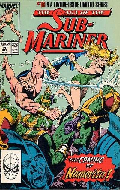 Namor gives us a detailed account of his origin story.This chapter finds Namor amnesia tic and in the care of a prostitute named Cindy Jones. Out of the blue, Dr. Doom promises him his memories back if he helps retrieve the Cosmic Cube from MODOK. Namor seemingly destroys the powerful object and Cindy abandons him due to the type of lifestyle Namor leads.After deciding to return to Atlantis, Namor discovers a young woman who is apparently drowning. After helping her regain consciousness, the young woman swims away. Namor returns home to find a trap laid for him by Llyra … using the young woman who turned out to be his cousin Namorita. After besting both Llyra and Prince Byrrah, Namor and Namorita decide a surface life wouldn’t be so bad. Namor asks his old friend Betty Dean to care for his cousin in his absence.The Defenders reform and go on many adventures against many foes. While with them, Betty and her friends were attacked by minions of Dr Hydro and turned into Hydro-Men “fish people”. After making them citizens of Atlantis, Namor discovers that his powers are acting up when he can’t retain moisture on his own naturally. In his attempt to learn the reason for this, Neptune sends him on yet another journey …Pin up of Roy Thomas and several heroes he'd drawn from 1939-1955 : Hydroman, Namor, The Fin, Venus, Amazing Man and Bull's-Eye Bill.