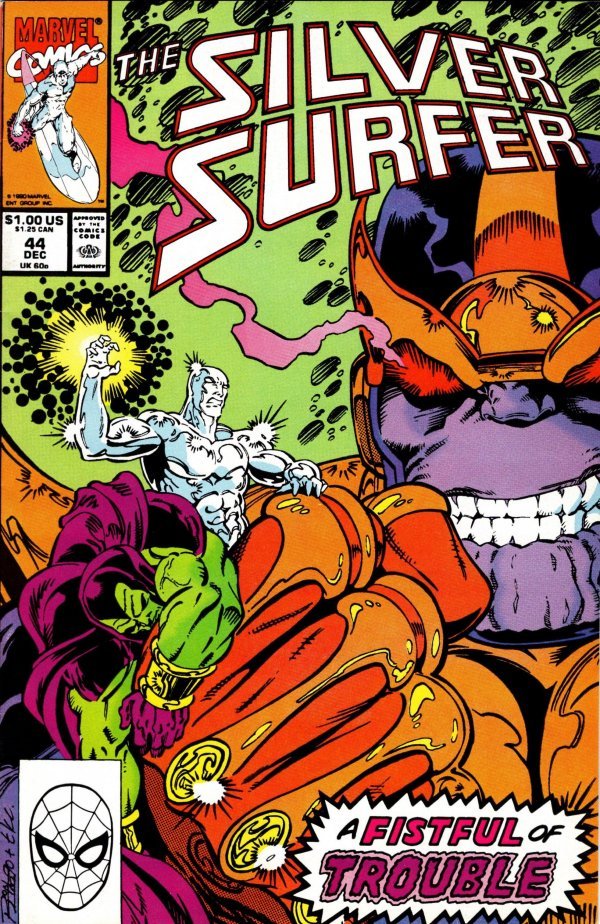 On Titan, Surfer, Mentor and Starfox examine the corpse of Thanos. Drax still believes Thanos to be alive. They determine that this corpse has been augmented for strength, something Thanos would not need. They all agree that Thanos is still alive. Unfortunately they need to wait for him to make his next move to find him.Meanwhile, Thanos has acquired all the Infinity Gems and placed them on the gauntlet. He summons a vortex, pulling the Surfer and Drax through to deal with them personally. He shows the Surfer the true power he has now and that all reality is at his command. He is now above a god. The Surfer realizes the gravity of this situation and he and Drax attack, only to have their souls removed and their bodies left motionless. But Thanos is being watched by another who wishes for such power - Mephisto.