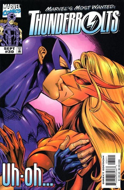 The explosive final confrontation with Graviton! More intrigue with Jolt at school! The Imperial Forces come looking for Charcoal, the Burning Man! The mystery of the T-Bolts' new HQ deepens! But all of that pales in comparison to our latest shockeroo: Hawkeye and Moonstone?locking lips?! Be here for the startling saga we had to call "Uh Oh...!"